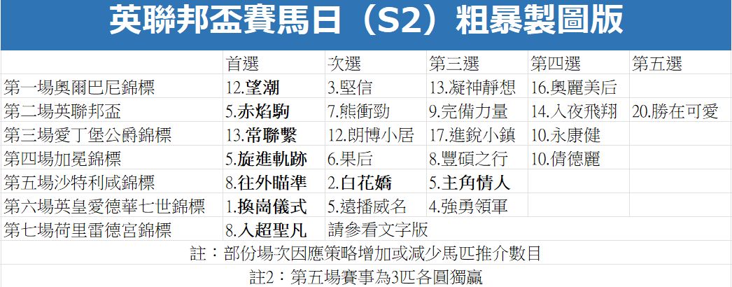 是賽日以冷門馬或熱頭冷腳為中心,愛好熱門者可退避……