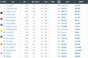 18.「菜圃向榮」(Potager、ポタジェ):雖然去年初已經證明了有一定實力。自從秋季天皇賞跑第六後,被定型成可以爭取跑前列名次馬匹,馬匹在金鯱賞快步速中跑獲第四。其後在大阪盃發揮真實力,最後將一度領先的「麗冠花環」追過。