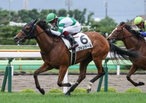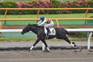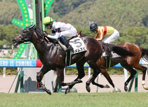 函館第五場1299米新馬賽,「大仁大勇」(Big Arthur、ビッグアーサー)子嗣Bouton d’Or(ブトンドール)跟在前方第三位,轉入直路走出外側三疊,最後100米走勢未轉彎下取下勝利。鮫島克駿稱雖然操練不理想,但跑出一場不錯賽事,下回應可發揮更佳。