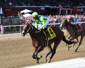 接著去到美國,觀賞兩場短途一級賽。首先是Alfred G Vanderbuilt讓賽。美國最強短途馬Jackie’s Warrior(羅沙理奧)上陣。雖然在賽事沒有立即搶放,但是在最後直路輕鬆帶出。其後只有Kneedeepinsnow勉強追上。以兩個馬位輕鬆勝出。Jackie’s Warrior成為歷來首匹連續三年在沙拉托加贏出一級賽賽駒。