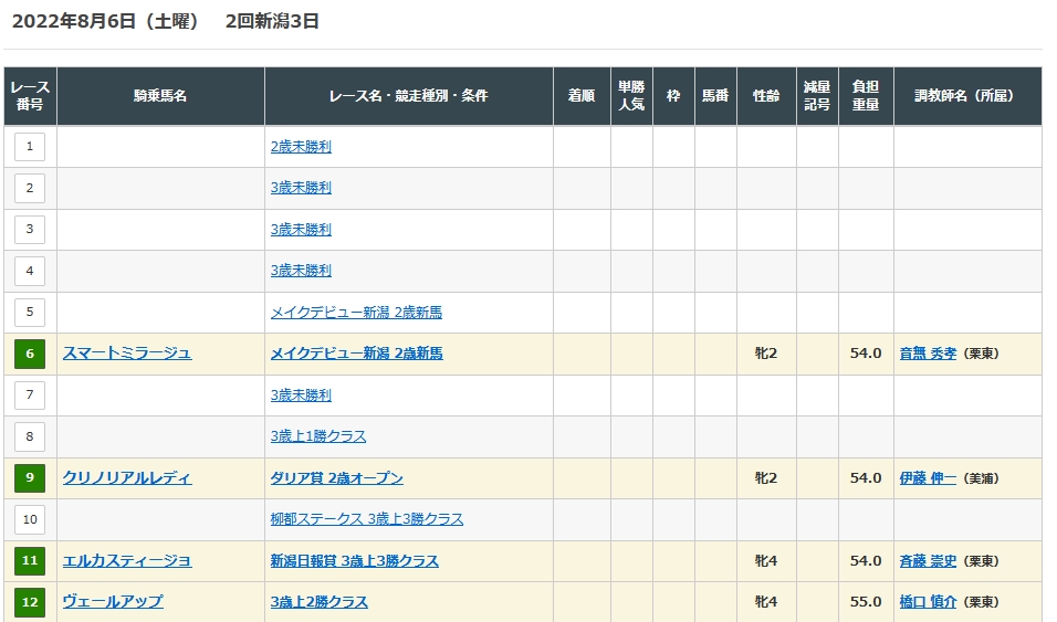 何澤堯星期六日繼續留守新潟,除了之前提及的目白家Kasino Octagon(カフジオクタゴン)外,較大機會的馬匹有星期六第十一場新潟日報賞El Castillo(エルカスティージョ)以及星期日第十二場1600米一勝班條件賽Campania(カンパーニャ)。