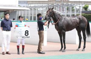 第十一場2600米二勝班條件賽札幌日刊體育盃,「金積驥」(Jack d’Or、ジャックドール)半弟Dinasta(ディナースタ)在對彎位置已經取得領先,最終以一個半馬位贏馬。橫山和生稱在昇格戰難免苦戰,不過仍能輕鬆勝出,似乎要重新確定能力。看來馬匹體質已經成長。「金積驥」星期日將角逐札幌紀念賽,似乎有機。