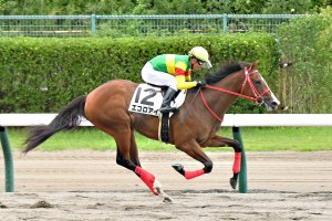 星期日新潟第六場泥地1200米新馬賽。森秀行外傭兵Shackleford子嗣Ecolo Ai(エコロアイ)雖然在12檔起步,但已經能夠順利貼欄,並順利一放到底。戶崎圭太表示,起步相當好,決定靠自己的步速追上。