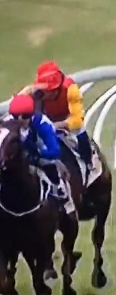 第五名:騎師視線被遮擋,脫綵帽再戰