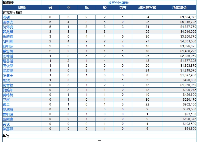 1. 莫雷拉上季記得不是和潘頓鬥到煞科日,結果當天他一場未勝被潘頓大三元贏下冠軍騎師麼?