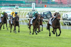 星期日在轉播賽前的新馬賽已下雨,第五場1600米新馬賽,Black Tide(ブラックタイド)子嗣Sunrise Peace(サンライズピース)最後一步將Jun Fukari(ジュンフカリ)追上,爆出冷門取勝。吉田隼人稱,其力量亦合此發揮。