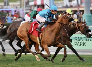 星期一聖雅尼場塔賽事,再有三場分級賽可以一提。首先是Mathis一哩錦標,由「閃亮加州」(California Chrome)子嗣One More Bid粄大冷勝出。