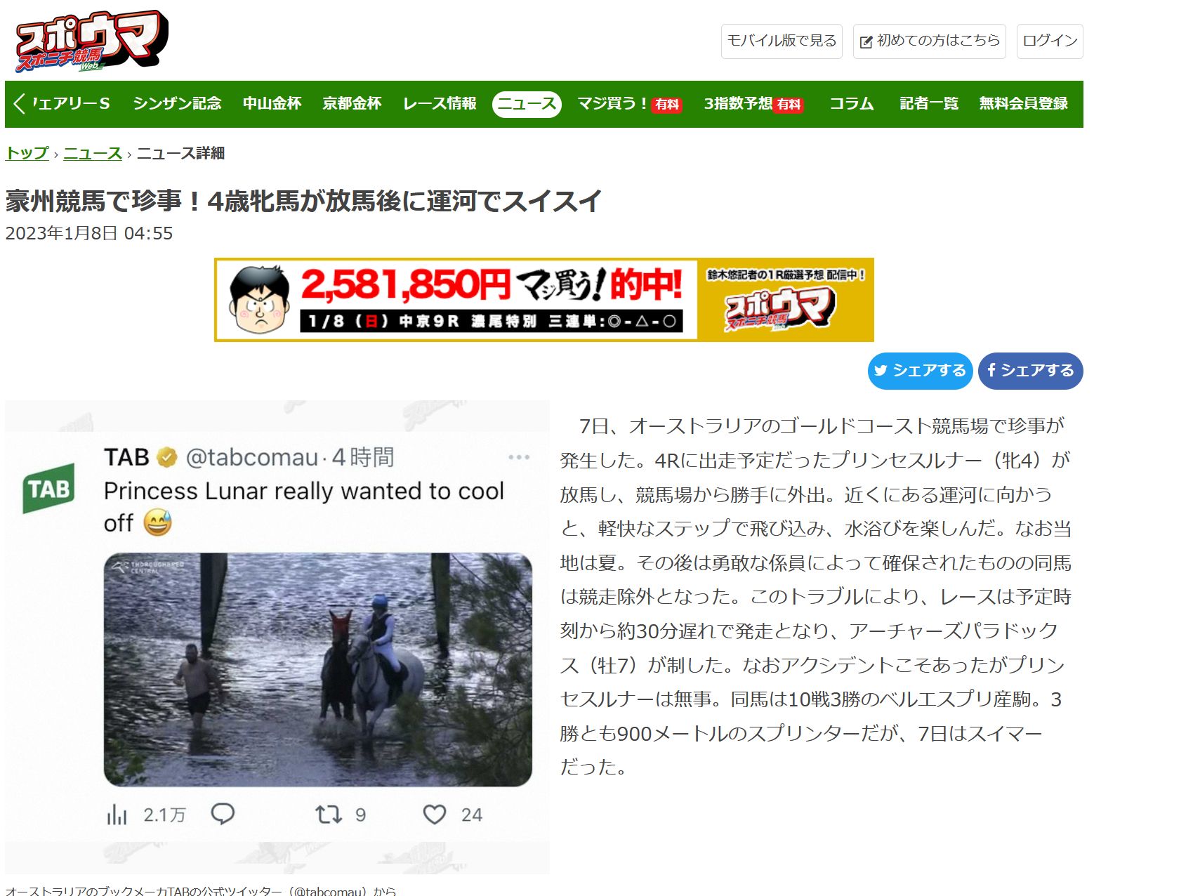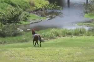 一匹名為Princess Lunar的處女馬突然去河中游泳