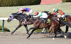 星期日中山第九場三歲雌馬1800米條件賽Daisy賞。「無敵先鋒」(Harbinger)子嗣Emu(エミュー)從外側追上,最後100米將率先突圍的大熱門Golden Hind(ゴールデンハンド)追過贏馬。菅原明良認為1800米距離最合其發揮。