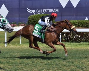 至於灣流雌馬草地三級賽蘭花錦標,前德國馬「妙施恩」(Amazing Grace)(羅沙理奧)在拍賣會高價售出後,首次在美國上陣。這匹披上莫格雅育馬場綵衣的馬匹守在後方,最後反壓一月尾贏出三級賽的Personal Best。在美國一出即勝。