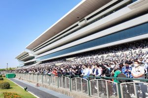 京都競馬場星期六重辦賽事。雖然當日連一場分級賽也沒有。總共有2784人在開放入場時已經排隊等候。由於需要訂場,幾乎沒有人留夜,一位六十多歲男性表示,在三冠位置都有三人而已,由於必需掃瞄QR碼入場,並無人留夜。似乎比想像有點靜。與另一位女性朋友的一位20多歲的女性表示,馬場真的十分漂亮,沙圈的花飾相當可愛。