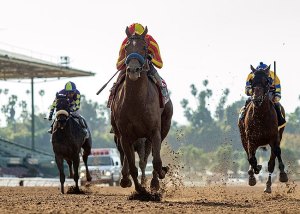 另一場是聖雅尼塔馬場加州錦標。在聖雅尼塔讓賽三甲馬Stilleto Boy以及Proxy前往阿肯色州角逐較高獎金賽事。Defunded成為了1.2倍大熱門,雖然在六匹參戰馬中留後,但在直路領先,仍有餘勁。巴富達表示考慮到奧克朗需要前速,故Defunded未有前往,而是留在加州。
