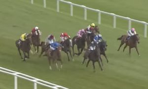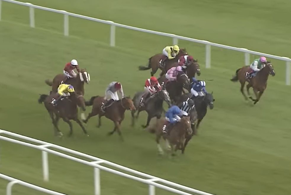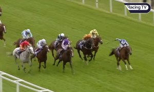 但是進入直路後卻反而走出,前方被兩匹冷門馬擋著,左側有「勇狐隊」(The Foxes),右側有「記憶珍藏」