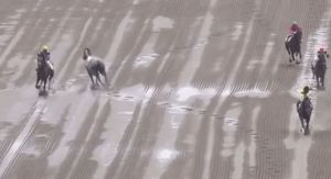 星期六東京競馬場一場障礙賽中,出見罕見意外。