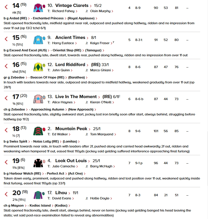 結果這四駒均大敗而回,完成名次由14名至包尾也有。此外在17檔正常起步的「安格魯」(Angle Land)以第六名完成