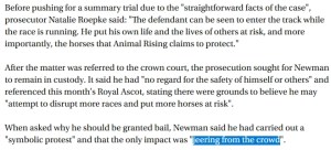 組織成員只能在指定示威區叫囂。不過有一位人士強闖馬場,更在比賽時開跑這樣做