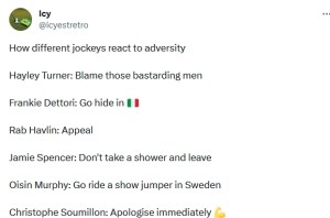 活該你被嘲笑!因為觀眾是來看賽馬,而不是來看你的小丑表演