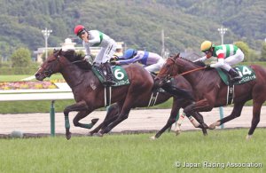 至於福島競馬場的三級賽是日經廣播賞。Lebensstil(レーベンスティール)上次大勝五個馬位後,成為賽事大熱。不過賽事由Deep Brillante(ディープブリランテ)子嗣Elton Barows(エルトンバローズ)從外側追上,最後以半個馬位擊敗Schilthorn(シルトホルン),至於Lebensstil後追太遲只獲季軍。騎師西村淳也稱,為了讓馬匹細場發揮,必需在起步後找出好位置,馬匹一場比一場更佳,值得高興。