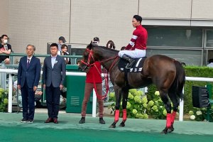 至於第一場兩歲馬1800米處女馬賽。「天賜寶駒」(Nathaniel)子嗣Gordon Tesoro(ゴードンテソーロ)慢放下一放到底贏馬。和田龍二稱,下雨後對馬匹表現發揮有利。