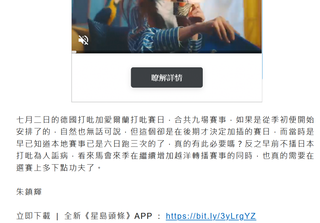 World Horse Racing差不多在全世界的平地賽事做「蹭飯王者」,只要派個掛名記者,然後Copy & Paste完成工作。雖然這個鐵板不大,但是他們亦知道,也急急地一言不發刪文,然後重新發展。
