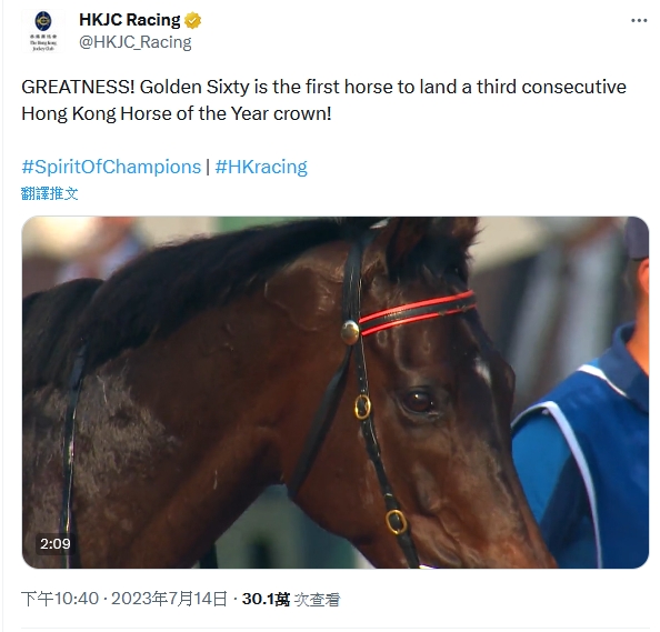 冠軍人馬獎的晚宴還沒完成,已經公佈了為香港馬主。看看香港賽馬會在Twitter (X)的推文