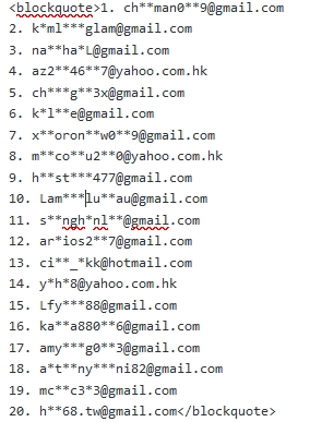 2.所有電郵名稱已經用「星號」遮蔽,存於Google內電郵將於今年內刪除。