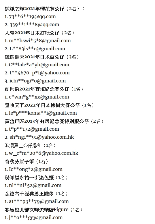 抽獎結果(注意:抽獎禮物數量有所更變,敬請留意)