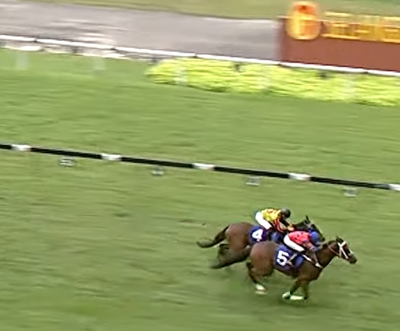 9月9日馬來西亞雪蘭莪賽事中,巴西騎師法雷拉策騎一匹「神牛」(Apis)的馬匹,起步領先,但不久跌鞭。