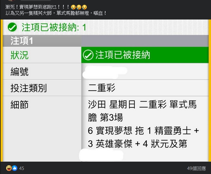但是某個專頁以及某份大報在抽籤時,不知道是為何顯示抽檔位的無意,還是私人因怨的有心。看不到馬主的樣子。