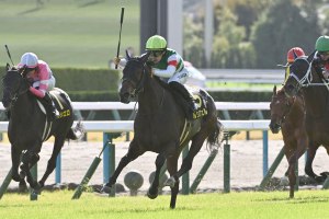星期日京都第十一場表列賽仙后座錦標,秋季天皇賞對牠們似乎太遙遠,有一場1800米遺材賽就剛剛好。這場賽事「正確距離」(Pin High、ピンハイ)降格上陣,雖然這場賽事跑得不錯,不過突圍而出的「爽爽海風」(Al Naseem、アルナシーム)在最後100米突圍而上。結果這匹在朝日盃未來錦標跑第四的馬匹,繼續主攻阪神下,終於在週日打開公開賽勝利之門。鮫島克駿表示,第一場與其合作贏馬,從兩歲開始逐漸成長。
