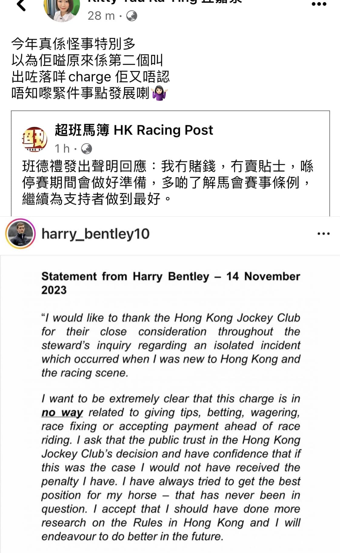 騎師班德禮涉一宗收受款項的案件,他即時停賽以及接受聆訊,香港賽馬會一直未能提及哪宗事件?涉及人士是誰?只是有許多馬圈人士一起跟風,為了流量不顧一切,結果跟車太貼大翻車。