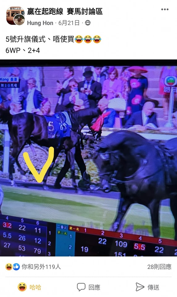 Hung Hon認為有馬匹出現「升旗儀式」,就不要買下去,這的確很有道理,因為「瞄得對」在六匹當中只是第五熱門。