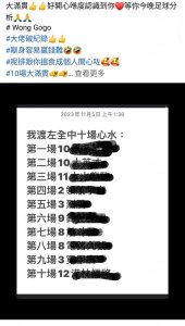 其後Wong Gogo保持賽馬燈力,經常說「重汪」「訓身」這個兩個關鍵字。11月5日婦女銀袋賽日,稱事故預先提供貼士