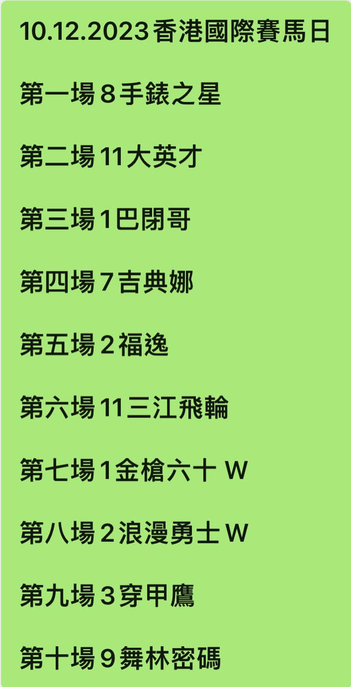 就好像下圖的愛爾蘭冠軍賽馬日貼士,順序與本人所選的完全一致。