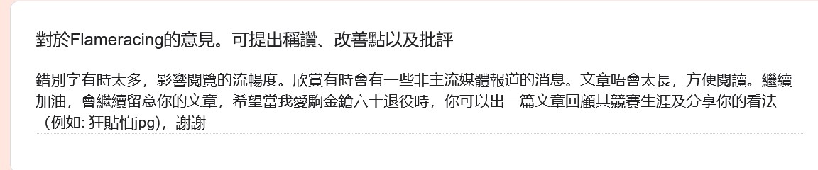 當然也有人不看好,認為會製造混亂,這位胡姓的馬場常客,一反常態冠軍賽馬日並無入場。