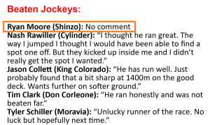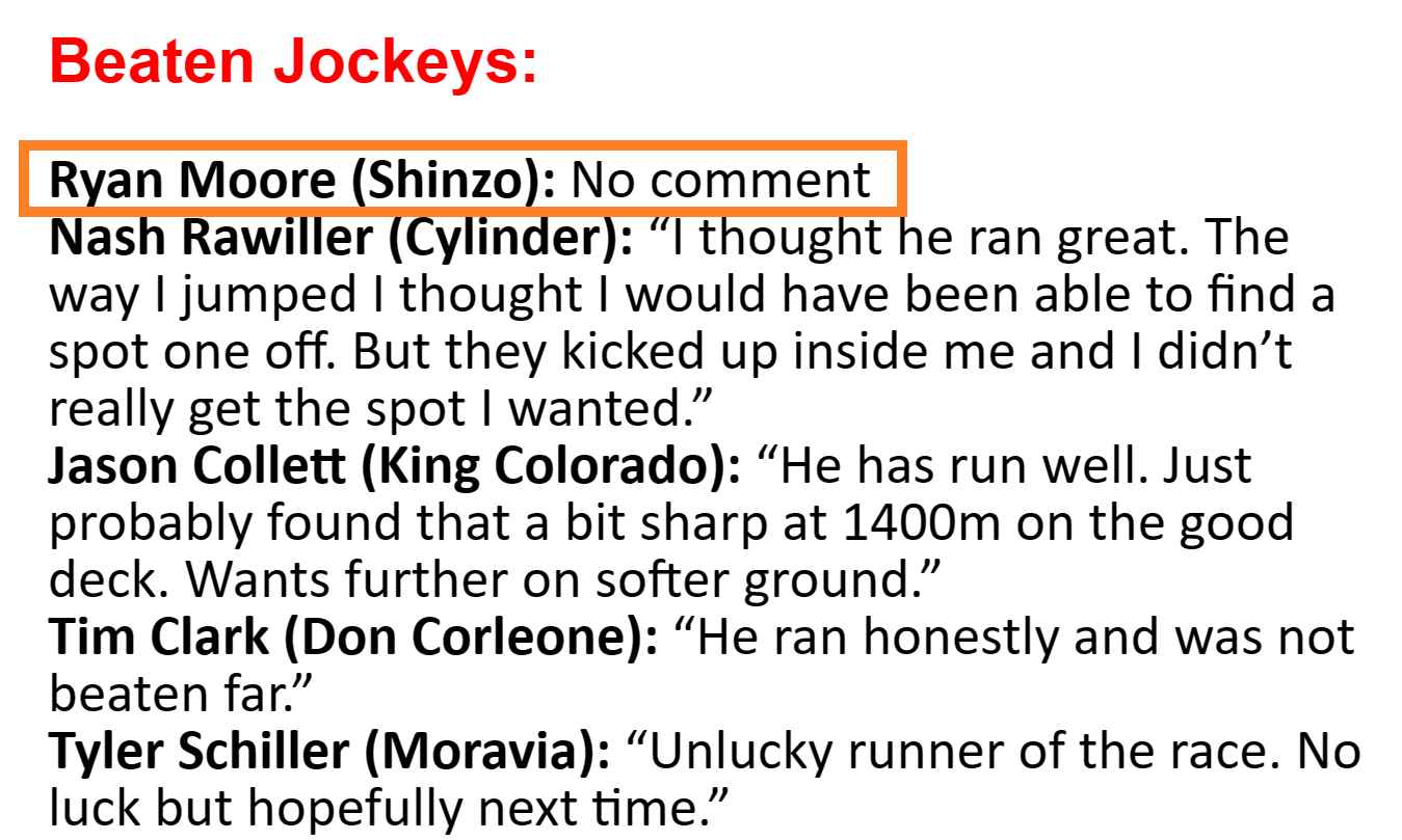 莫雅今年贏出多項一級賽,並成為2023年度一級賽最佳騎師。不過他肯定不喜歡澳洲因為肯定受不住這種訪問。