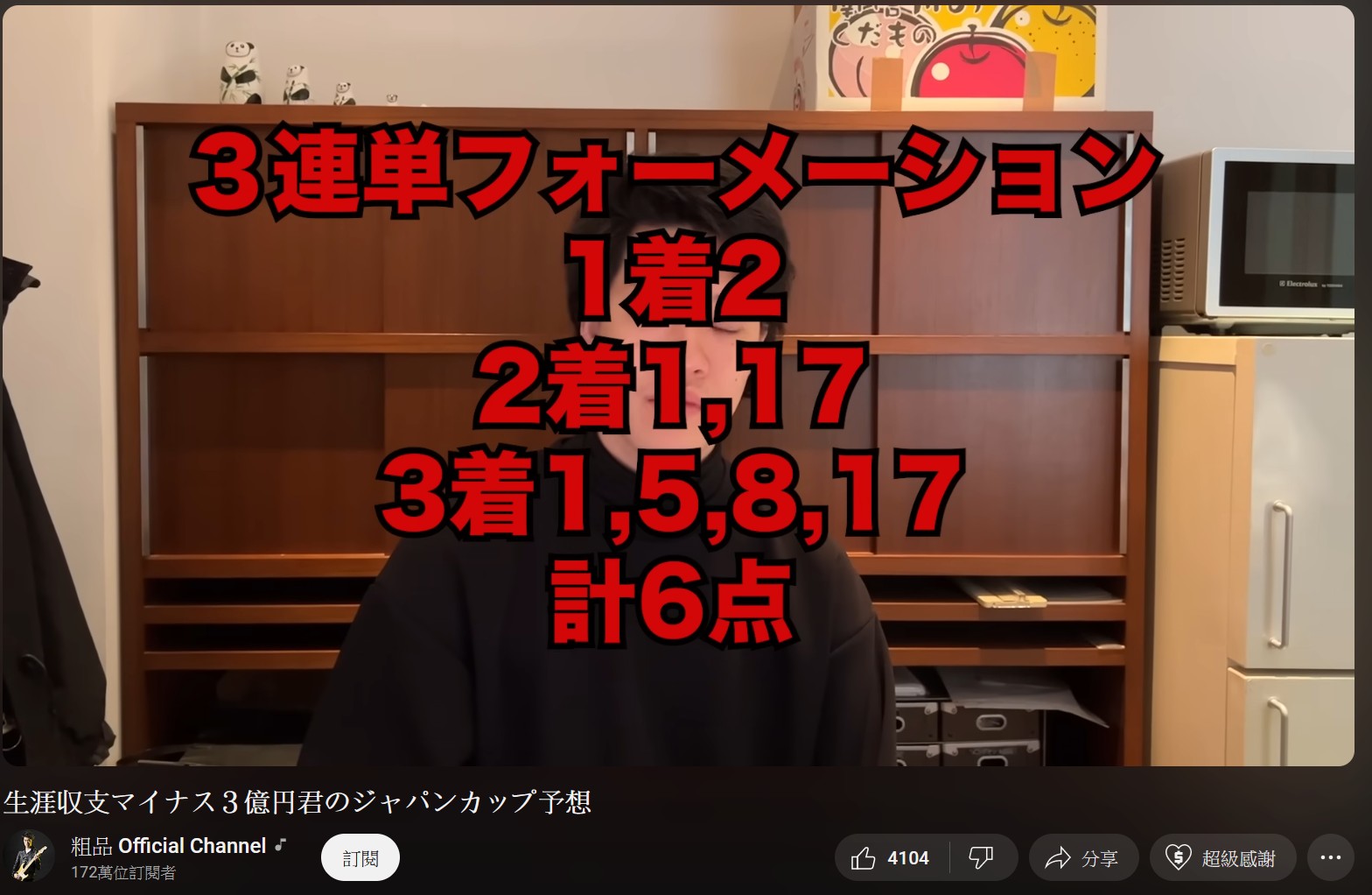 有看狂新聞都知道,日本有一位賽馬燈神名為粗品