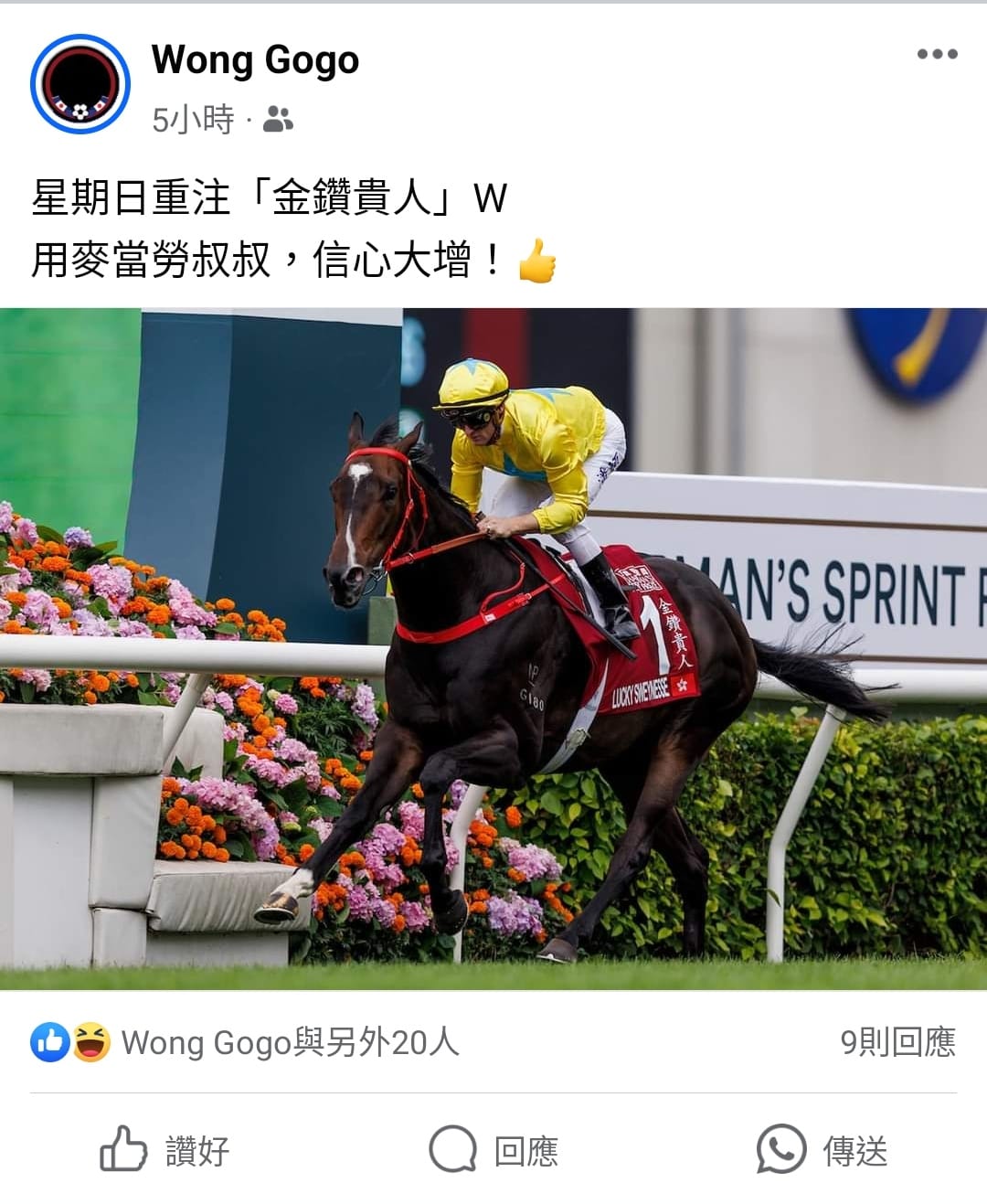 第一名:Wong Gogo提前燈打吡大賽及高松宮紀念賽