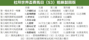 S3是杜拜世界盃賽馬日,第一場高多芬一哩賽沒有日本馬,我反而放鬆起來。「沙國桂冠」在沙地盃(沙特盃)跑獲季軍後乘勝追擊,今次更自行降半格角逐高多芬一哩賽,實力當然大賺,加上操練看起來一切如常。「星大道」於麥通經典賽跑獲季軍,今次亦縮程上陣,前領跑法夠主動。「精銳總部」在沙地盃上跑獲第八已經不過不失,縮程跑更可發揮。「獨行其道」是去年冠軍,於一哩賽一定實力,季內初出輕勝麥通一哩賽,即使沙地盃中亦取下第六,與「精銳部隊」需克服外檔。如果要攻大彩池可以考慮「近者先得」,輸給「月桂河」實在沒話可說。