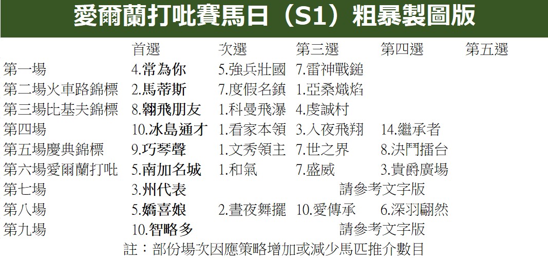 由於部份賽事出賽馬匹較少,因此推介上會作出一些調整
