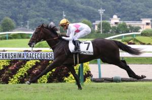星期六福島第五場新馬賽,「北部玄駒」(Kitasan Black、キタサンブラック)子嗣Piko Chan Black(ピコチャンブラック)已經在傳聞弓強,果然一上場賽場與別不同,起步已經有一定優勢,轉入直路後輕鬆甩開對手,最終大勝七個馬位。石橋脩表示速度實在與其他馬完全不同。