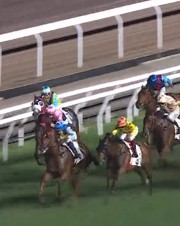 看似贏定的時間,但在最後100米馬匹突然貼入內欄,並撞向內欄。