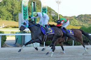 星期日佐賀賽事,夏日冠軍錦標,因颱風影響延期,中央騎師全數缺席。結果真的被地方馬有機可乘。去年從中央轉戰兵庫的Aladdin Barows(アラジンバローズ)(下原理)有機可乘。轉入直路仍由Raptus(ラプタス)領先,但是最後被Aladdin Barows追過。除了Raptus外,其他中央馬輸得一敗塗地。
