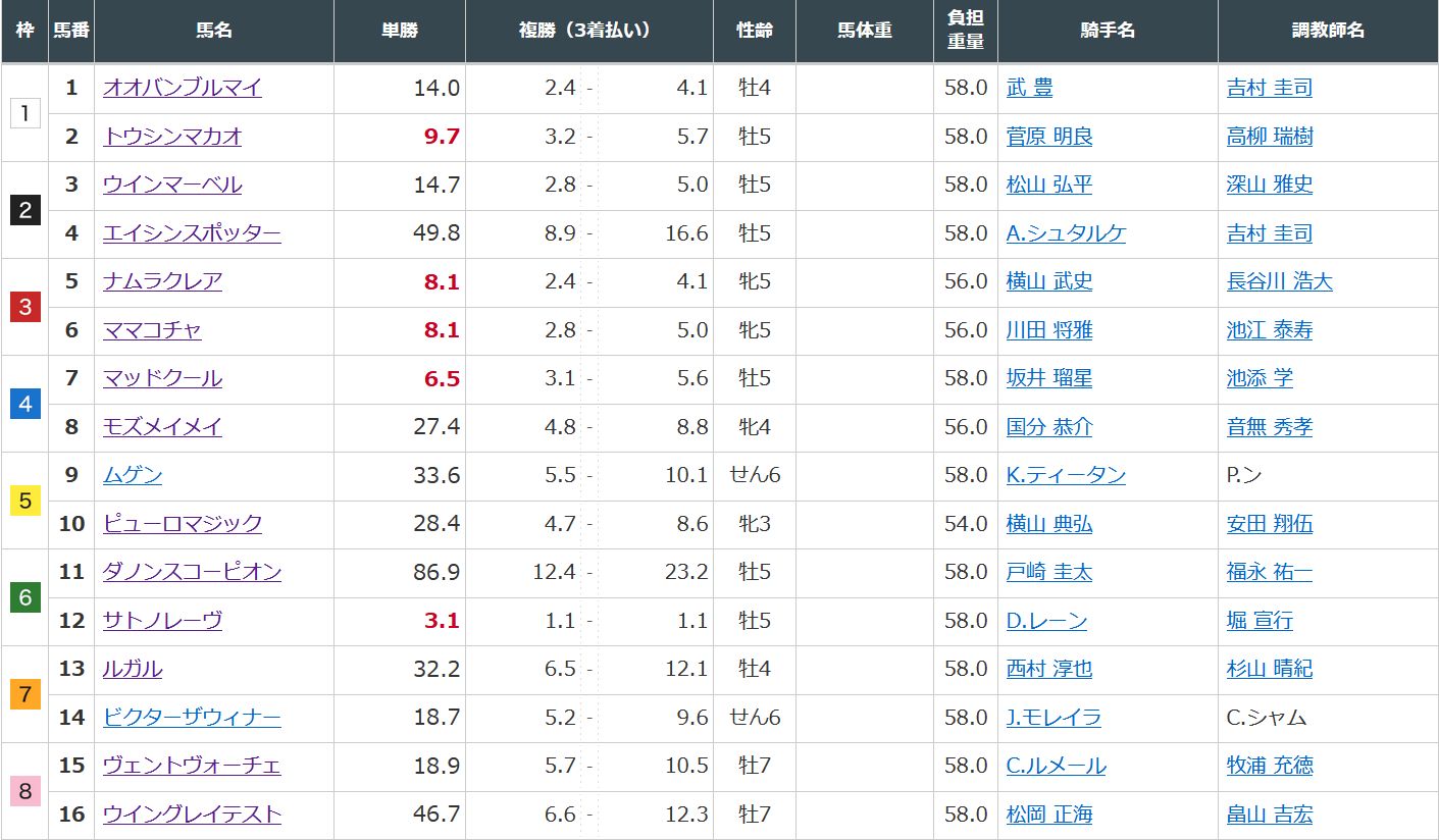7.「消暑樂祭」(Mad Cool、マッドクール):去年此賽事亞軍,其後在短途錦標跑獲第八。今年出戰高松宮紀念賽,率先突圍輕鬆取勝。上次在主席短途獎未能發揮應有水準,返回日本應可正常發揮。
