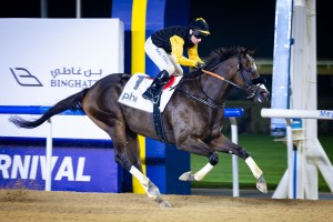 杜拜世界嘉年華週華週五進行第三週比賽。主題賽事為表列賽Al Garhoud短途錦標。杜拜金莎軒錦標冠軍「天空之鏡」(Tuz)(奧詩雅)壓陣,結果起步後領先,讓對手4磅下,仍以近六個馬位大勝「緋緋紅」(Colour Up)。看來此駒角逐沙地盃(沙特盃)或再戰杜拜金莎軒錦標不能輕視。