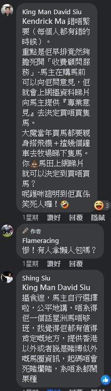 只是一個小問題,就來嗆狂小編。我不滿某些賽事不轉播,你卻以馬會打手方式去針對狂小編,既然這樣,你就應該去香港賽馬會應徵
