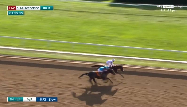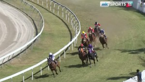 看似贏定的時間,但在最後100米馬匹突然貼入內欄,並撞向內欄。