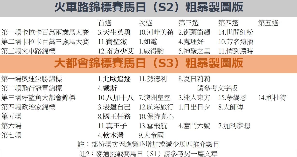 部份賽事推介並不齊全,敬請留意……
