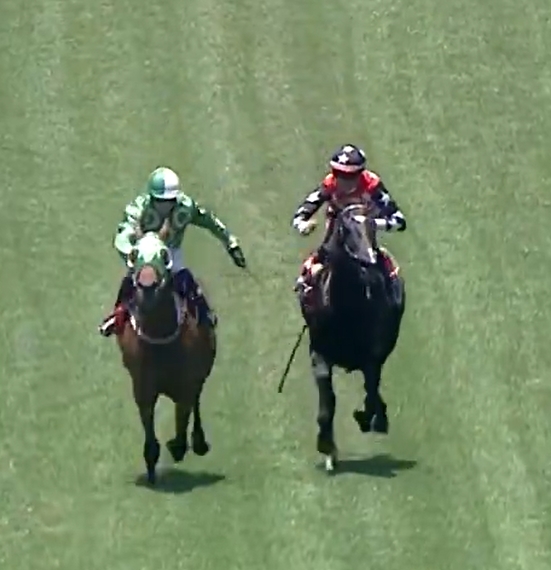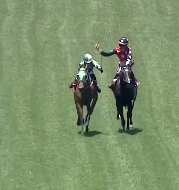 約250米處,兩人有磨擦。傑凱奇打左手鞭時疑似擊中雷景勳,其後雷景勳向傑凱奇背部打了兩鞭。