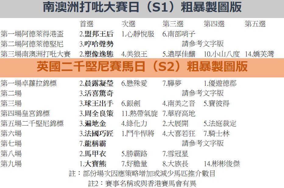 阿德雷得港盃是一場長途公開賽,不過竟無一匹北半球馬,且像一場評分90水準的比賽「盟邦王后」雖然近期在分級賽表現不外如是,但過往曾於維省橡樹上名的馬匹,角逐較低級賽事隨即拿好表現,這場三級賽應沒問題。「心靜悅服」贏出阿德萊得盃,挑戰墨爾本盃資格賽敗得一敗塗地,重返南澳上陣,蝕磅也沒關係。「南部哨子」上次於橡灣復活節賽期角逐公開讓賽,後段收復失地跑第七。